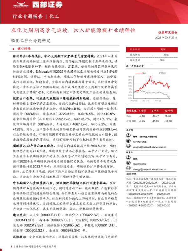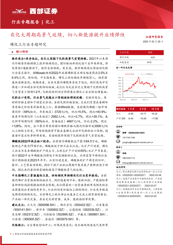 【西部证券】【20220329】磷化工行业专题研究:农化大周期高景气延续,切入新能源提升业绩弹性-19页
