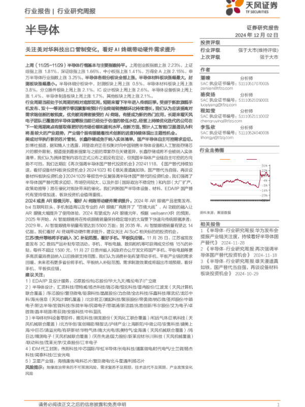 【天风证券】【20241202】2025年01月19日更新-【天风证券】半导体行业研究周报:关注美对华科技出口管制变化,看好AI终端带动硬件需求提升-32页