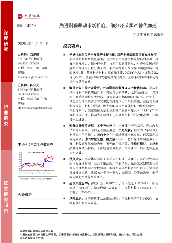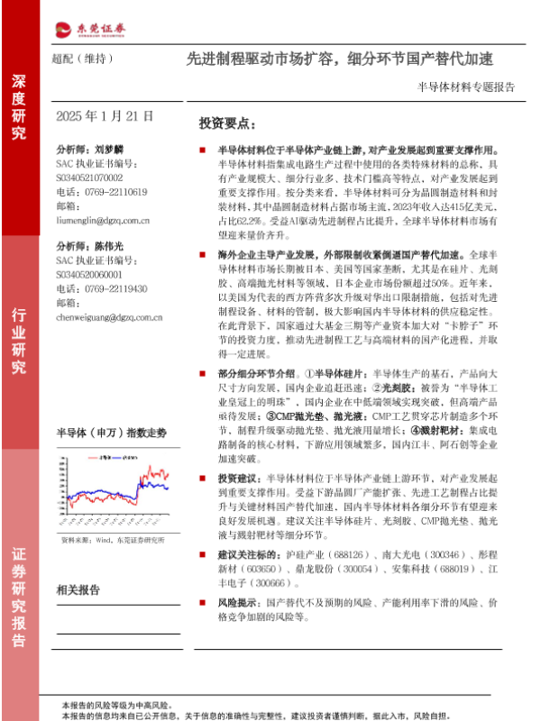 【东莞证券】【20250125】2025年01月25日更新-【东莞证券】半导体材料专题报告:先进制程驱动市场扩容,细分环节国产替代加速-36页