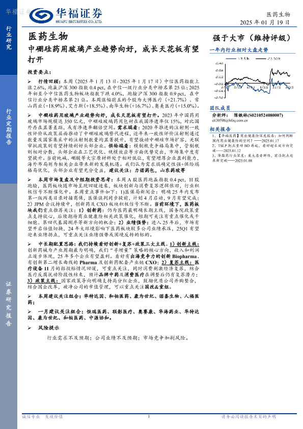 【华福证券】【20250126】医药生物行业定期报告:中硼硅药用玻璃产业趋势向好,成长天花板有望打开-16页