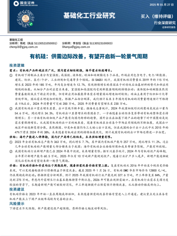 【国金证券】【20250131】有机硅:供需边际改善,有望开启新一轮景气周期-19页