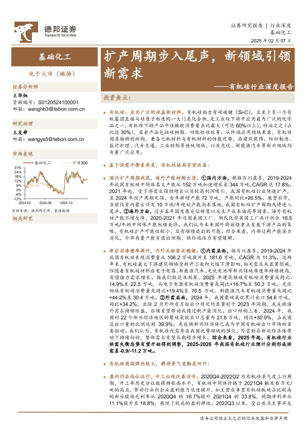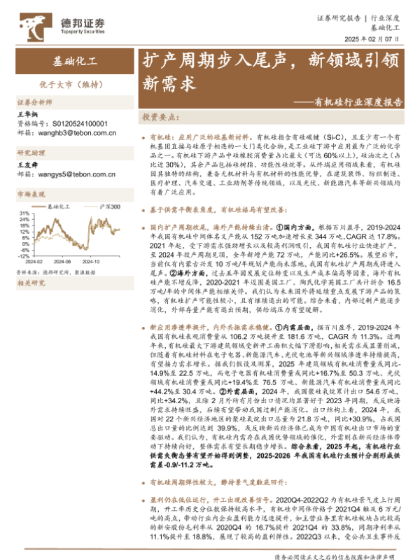 【德邦证券】【20250207】有机硅行业深度报告:扩产周期步入尾声,新领域引领新需求-23页