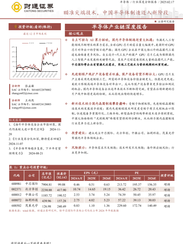 【财通证券】【20250226】2025年02月26日更新-半导体行业产业链深度报告:瞄准尖端技术中国半导体制造迈入新阶段-20页