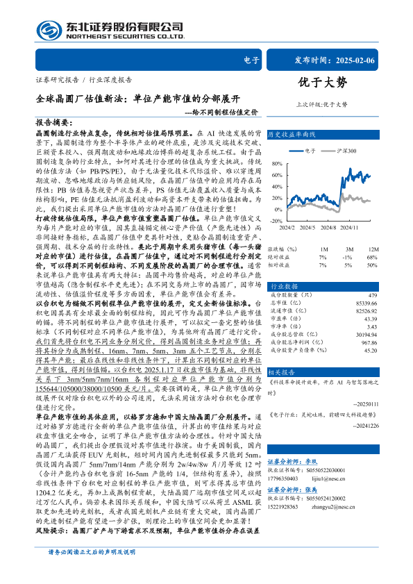 【东北证券】【20250206】2025年02月09日更新-【东北证券】电子行业深度报告:给不同制程估值定价,全球晶圆厂估值新法,单位产能市值的分部展开-30页