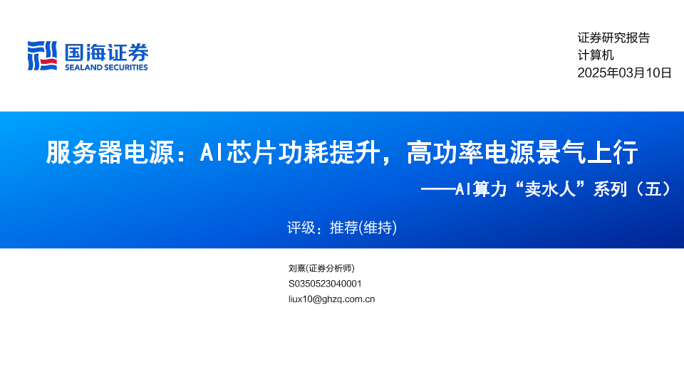 【国海证券】【20250310】AI算力“卖水人”系列(五):服务器电源:AI芯片功耗提升,高功率电源景气上行-37页