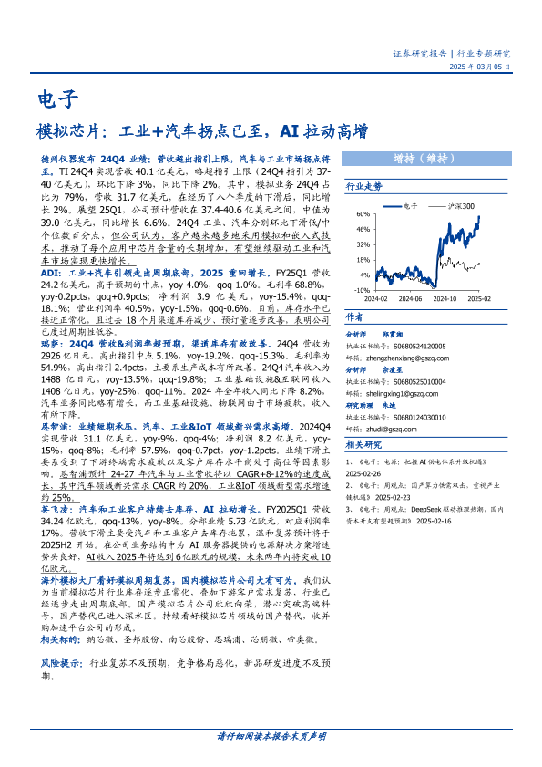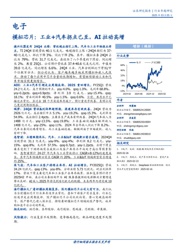 【国盛证券】【20250313】电子行业专题研究:模拟芯片,工业+汽车拐点已至,AI拉动高增-17页