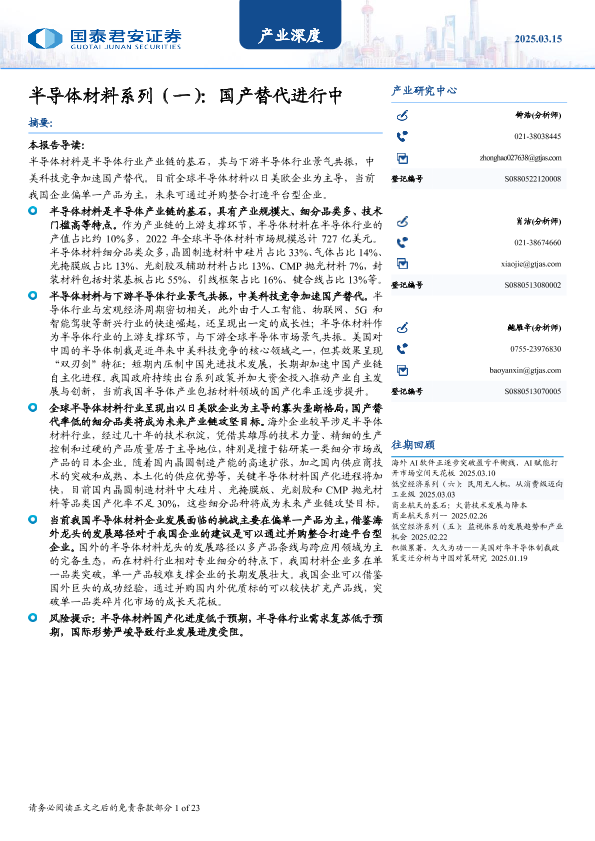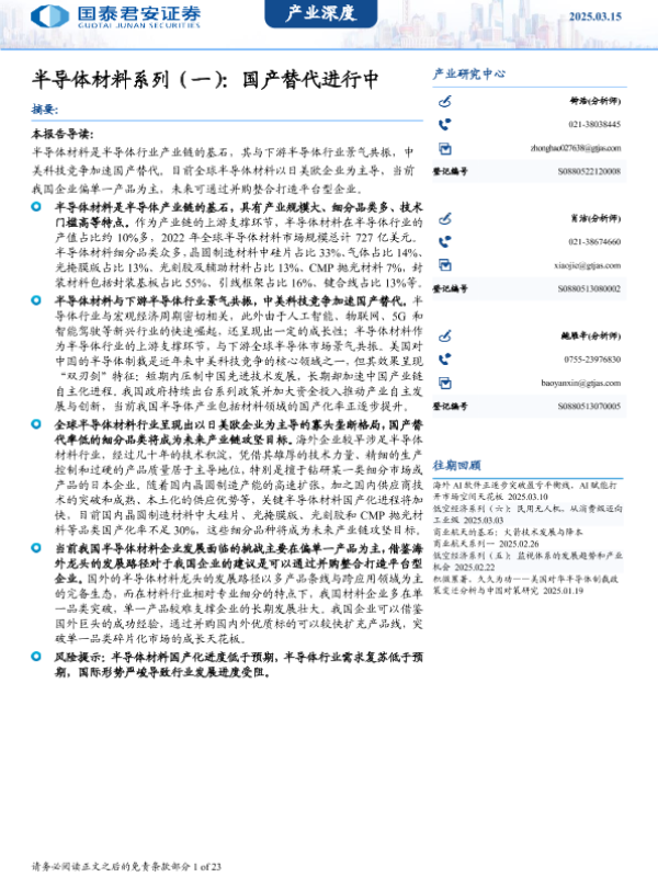 【国泰君安证券】【20250326】半导体材料系列(一):国产替代进行中-23页
