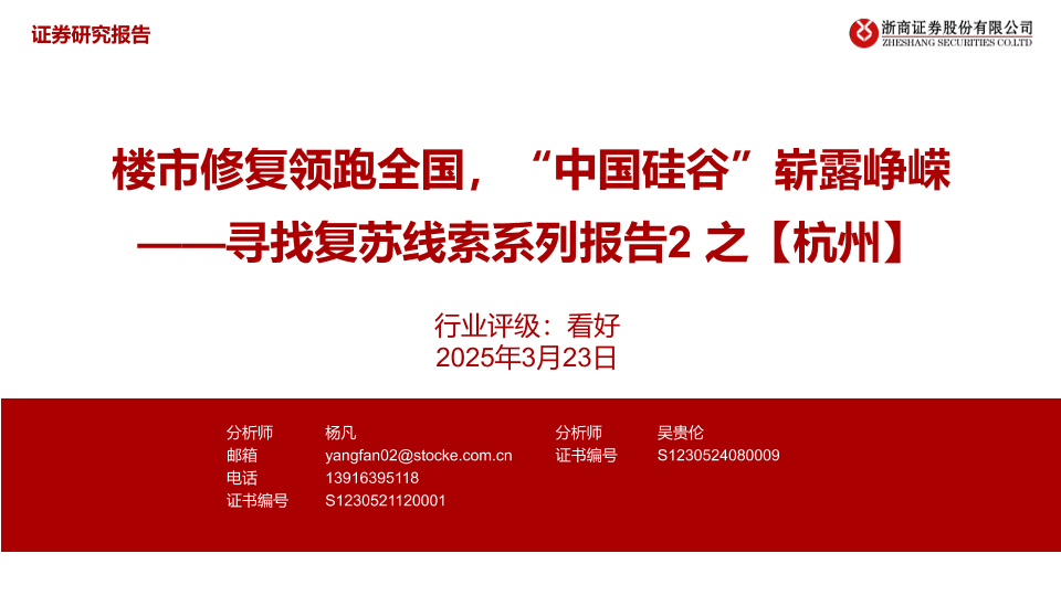 【浙商证券】【20250323】2025年03月27日更新-房地产行业寻找复苏线索系列报告2之【杭州】:楼市修复领跑全国“中国硅谷”崭露峥嵘-35页