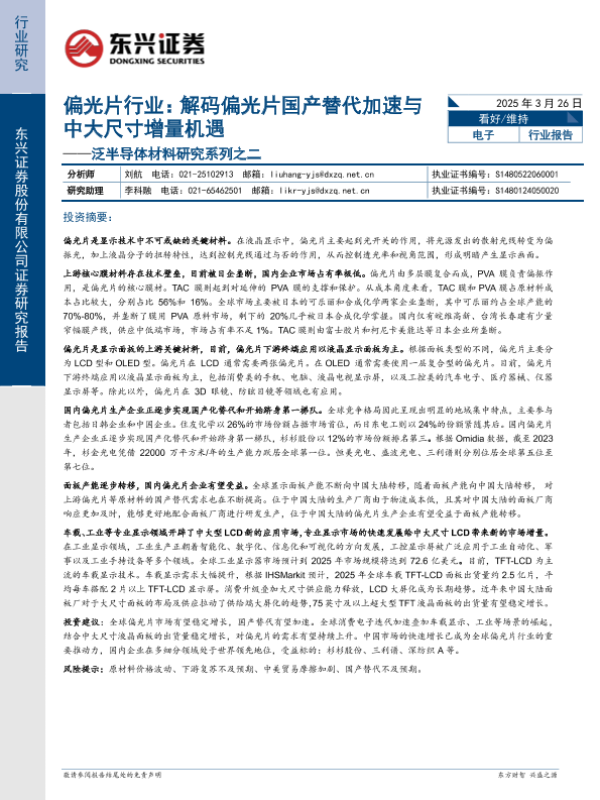 【东兴证券】【20250326】泛半导体材料研究系列之二:偏光片行业:解码偏光片国产替代加速与中大尺寸增量机遇-16页
