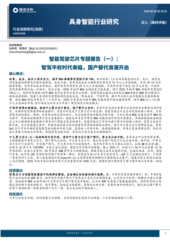 【国金证券】【20250330】2025年03月30日更新-智能驾驶芯片专题报告-一-:智驾平权时代来临,国产替代浪潮开启-25页