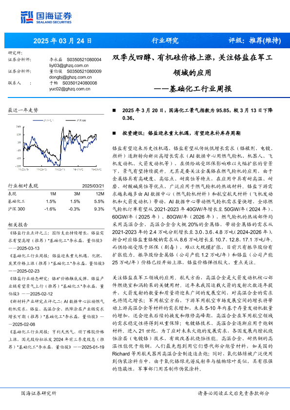 【国海证券】【20250330】2025年03月30日更新-【国海证券】基础化工行业周报:双季戊四醇、有机硅价格上涨,关注铬盐在军工领域的应用-59页