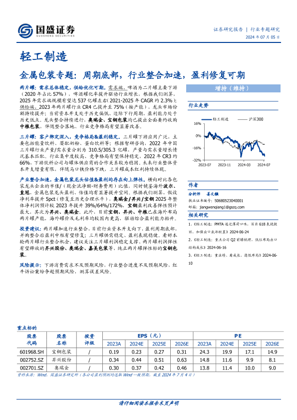 【国盛证券】【20240705】2024年10月23日更新-轻工制造行业:金属包装专题周期底部行业整合加速盈利修复可期-28页