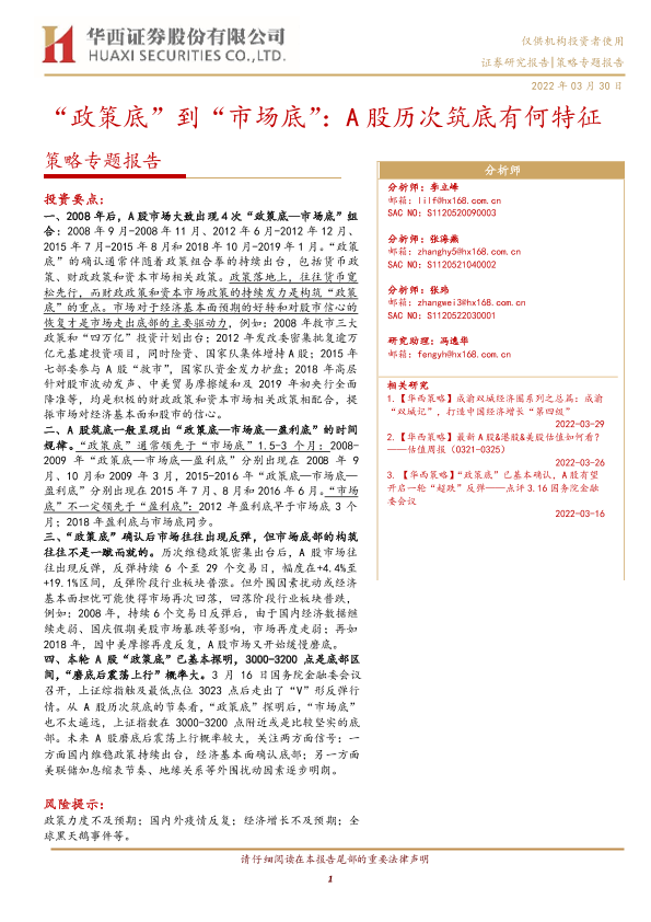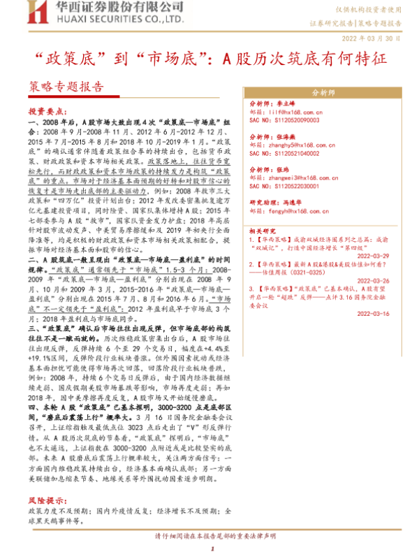 【华西证券】【20220330】“政策底”到“市场底”,A股历次筑底有何特征-15页