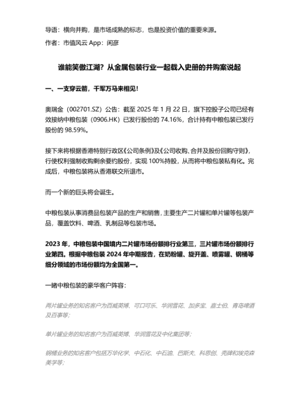 【市值风云 App:闲彦】【20250213】谁能笑傲江湖?从金属包装行业一起载入史册的并购案说起-10页