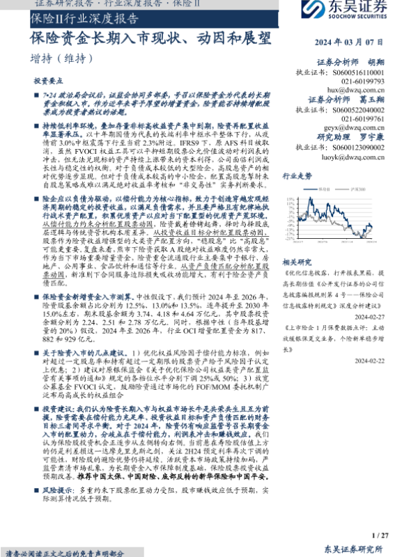 【东吴证券】【20240308】保险Ⅱ行业深度报告-保险资金长期入市现状、动因和展望-27页