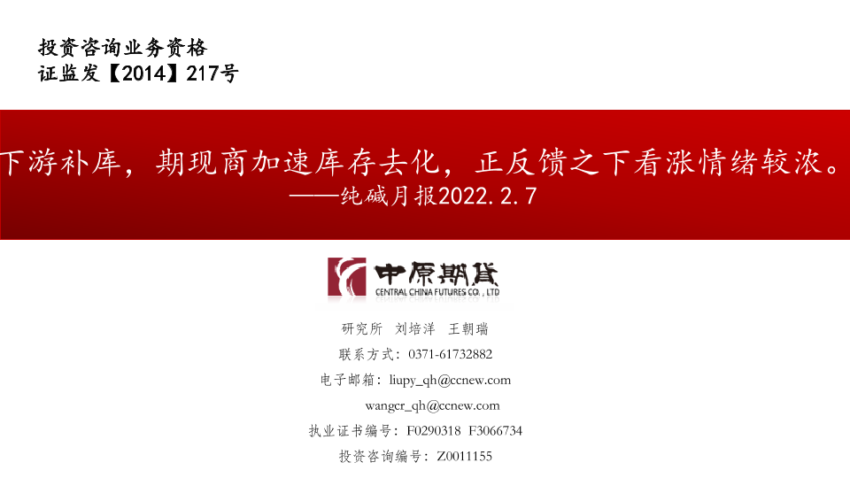 【中原期货】【20220207】纯碱月报:下游补库,期现商加速库存去化,正反馈之下看涨情绪较浓-17页