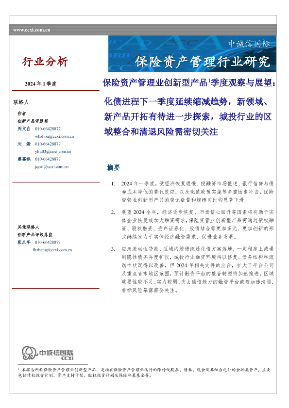 【中诚信国际】【20240518】2024年05月18日更新-保险资产管理业创新型产品1季度观察与展望-13页