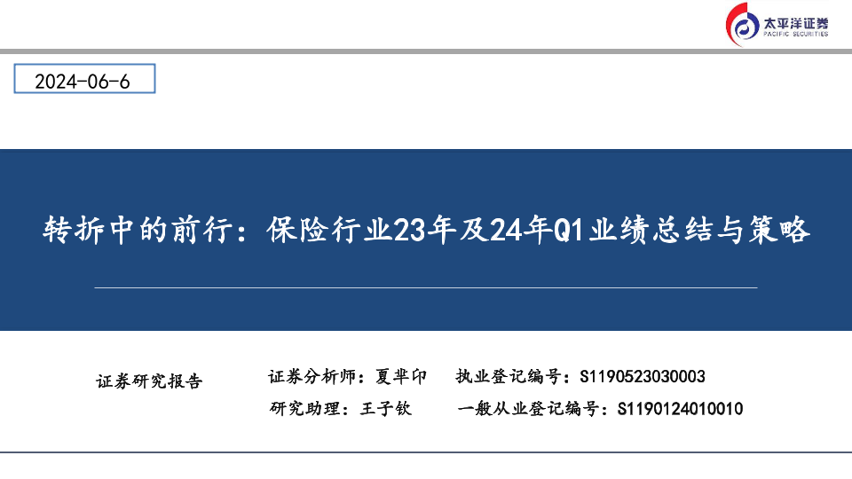 【太平洋证券】【20240606】转折中的前行-保险行业23年及24年Q1业绩总结与策略-29页