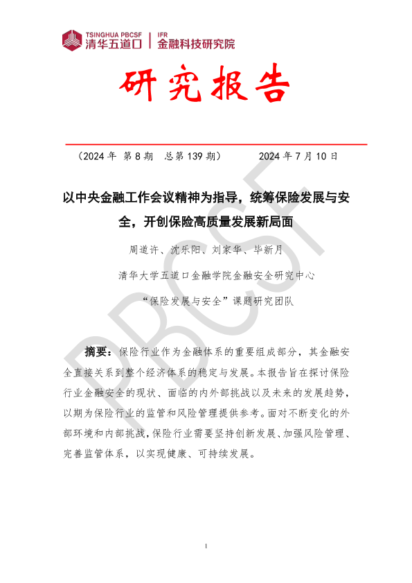 【清华大学五道口金融学院金融安全研究中心】【20240723】以中央金融工作会议精神为指导统筹保险发展与安全开创保险高质量发展新局面-17页