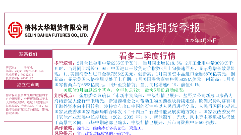 【格林大华期货】【20220325】股指期货季报:看多二季度行情-50页