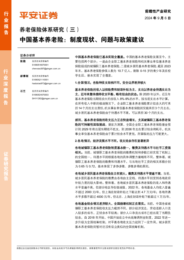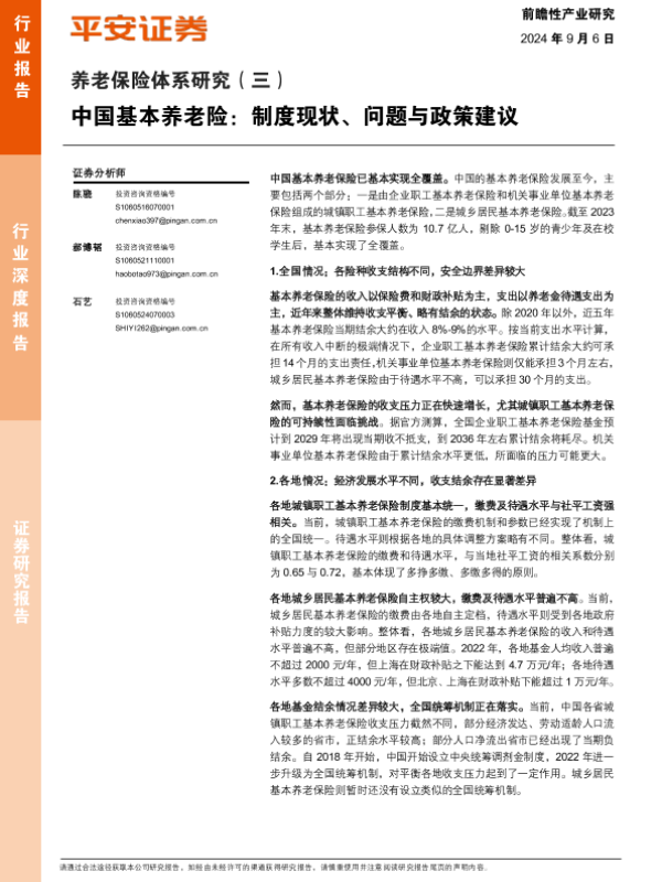【平安证券】【20240906】养老保险体系研究(三):中国基本养老险制度现状、问题与政策建议-28页