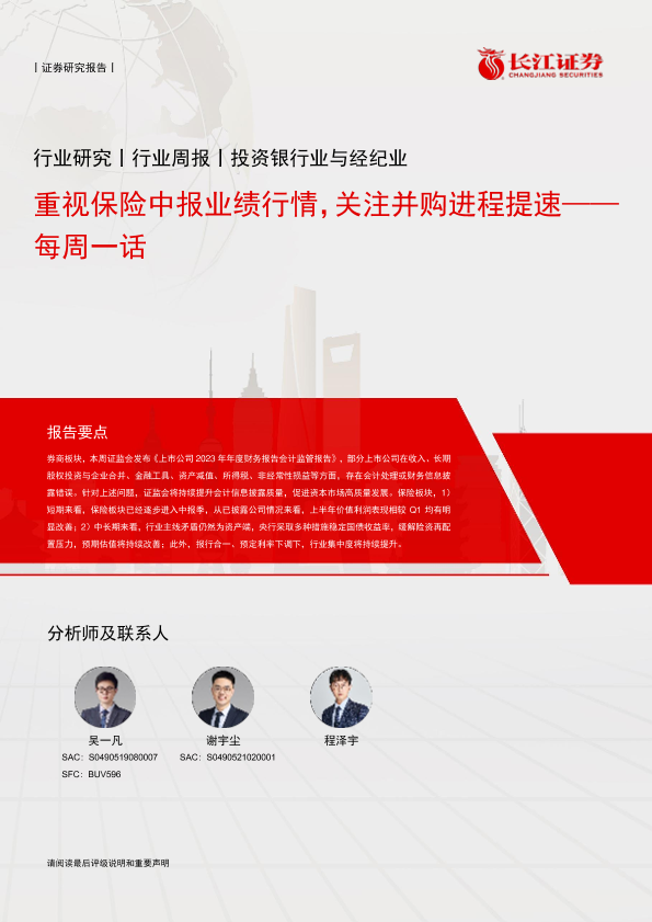 中报业绩 保险行业 券商并购 财务监管 资本市场
