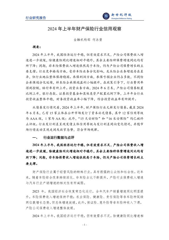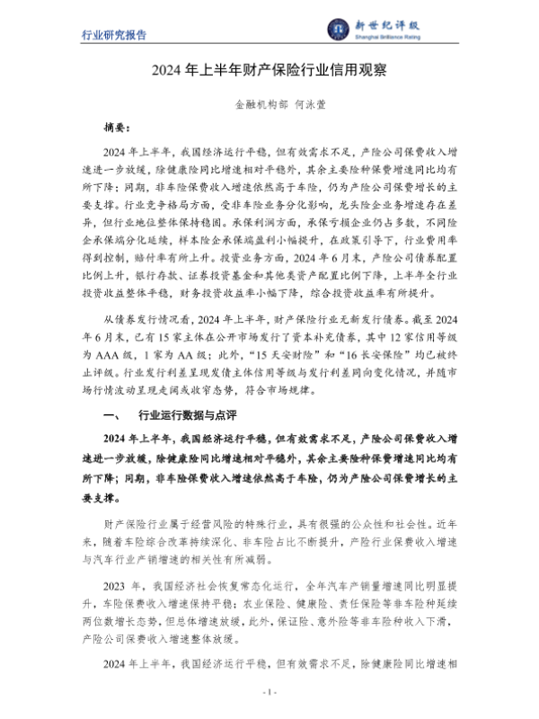 【金融机构部何泳萱】【20240918】2024年上半年财产保险行业信用观察-14页