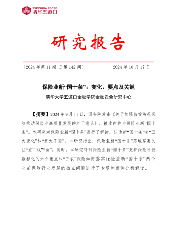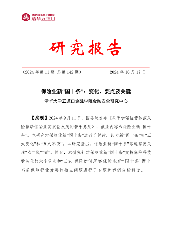 【清华大学五道口金融学院金融安全研究中心】【20241017】保险业新“国十条”:变化、要点及关键研究报告-27页