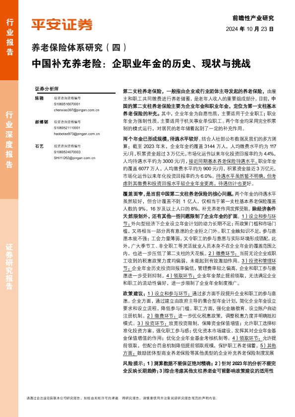 【平安证券】【20241023】养老保险体系研究(四):中国补充养老险:企职业年金的历史、现状与挑战-23页