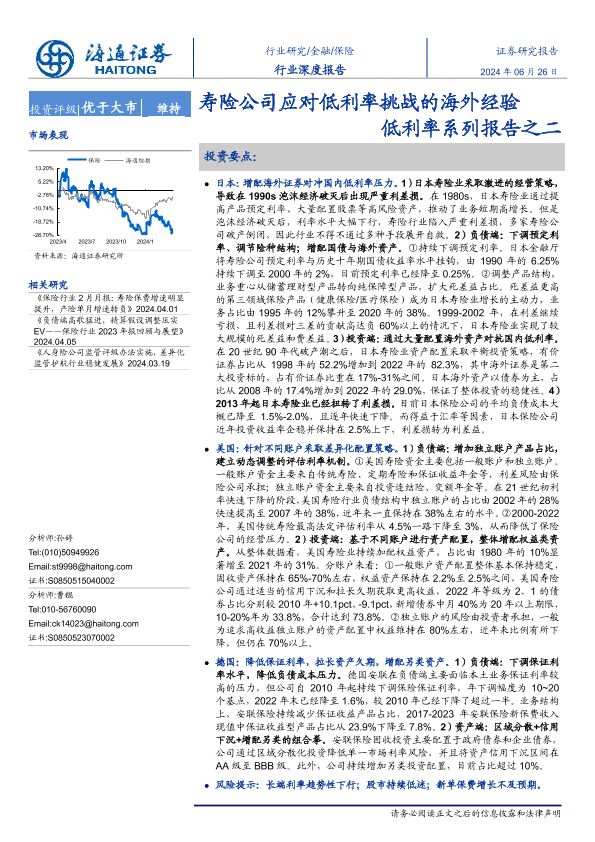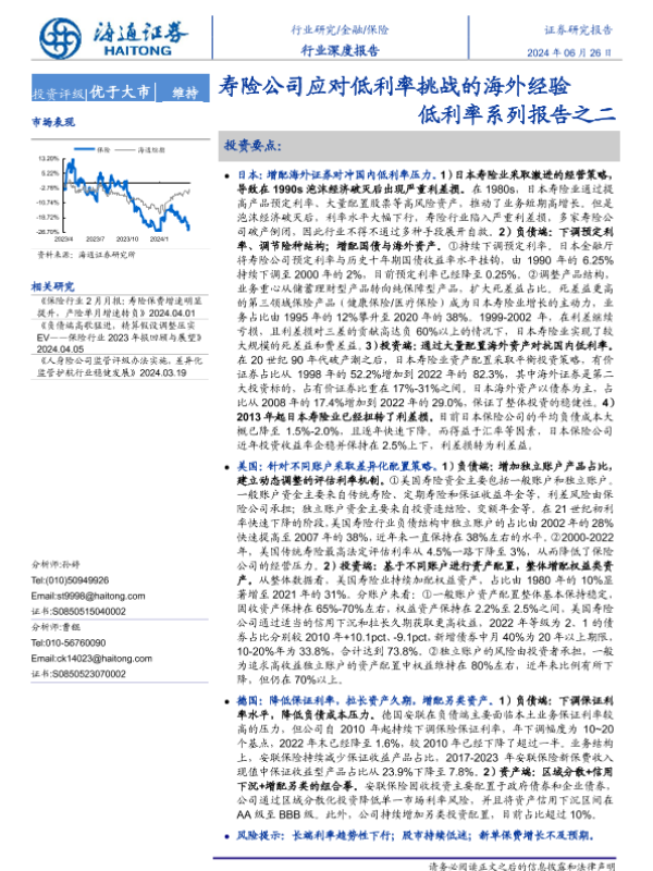 【海通证券】【20240626】2024年11月10日更新-保险行业低利率系列报告之二:寿险公司应对低利率挑战的海外经验-20页