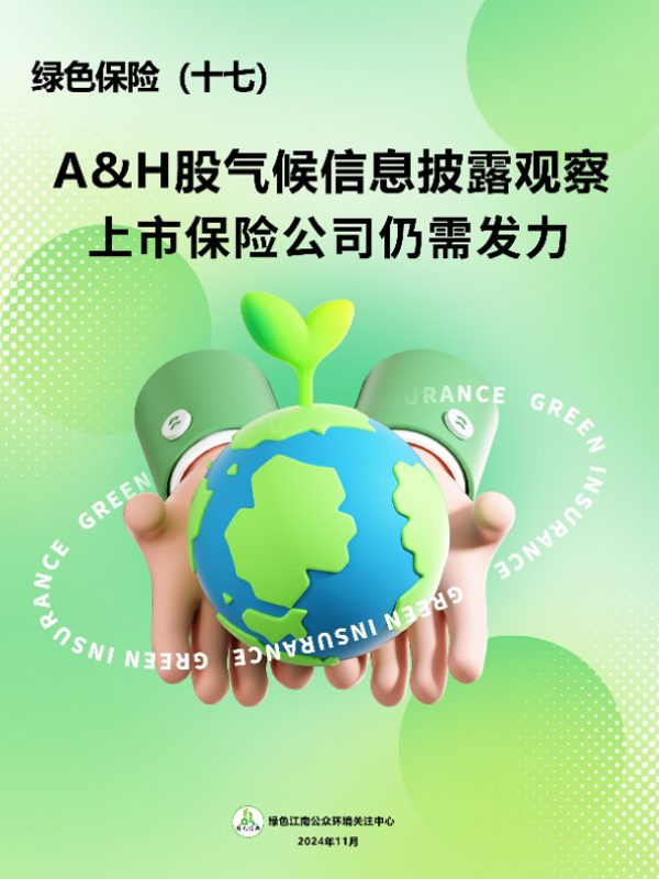 【绿色江南公众环境关注中心】【20241115】2024绿色保险(十七) :A&H股气候信息披露观察上市保险公司仍需发力-17页