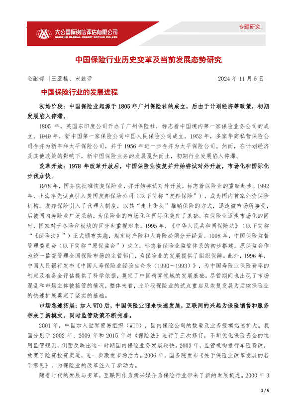 【大公国际】【20241209】中国保险行业历史变革及当前发展态势研究-6页
