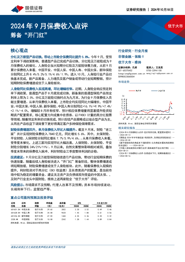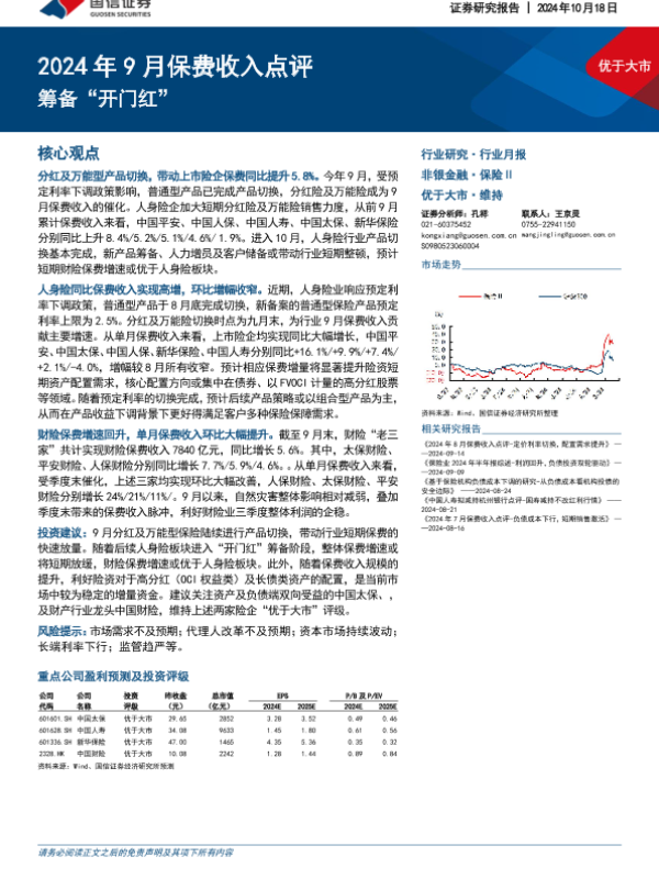 【国信证券】【20241018】2024年9月保费收入点评:筹备“开门红”-10页