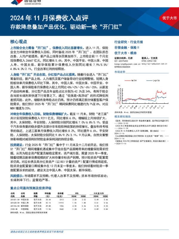 【国信证券】【20241226】保险业2024年11月保费收入点评:存款降息叠加产品优化,驱动新一轮“开门红”-11页
