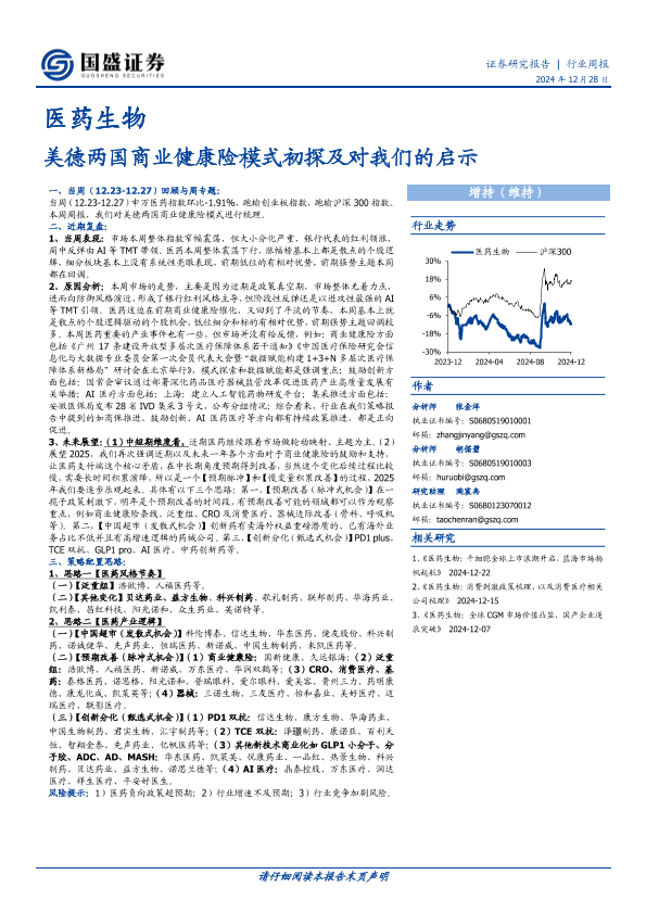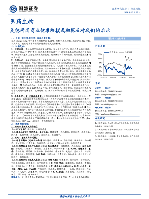 【国盛证券】【20241230】医药生物行业周报:美德两国商业健康险模式初探及对我们的启示-34页