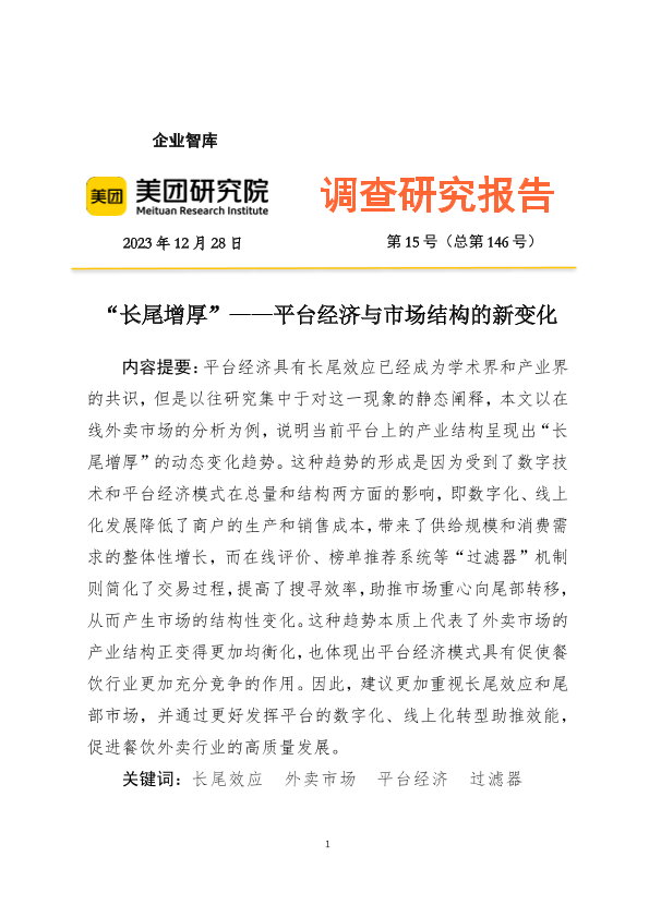 【美团研究院】【20231228】2024年02月03日更新-2023年“长尾增厚”-平台经济与市场结构的新变化调研报告-24页