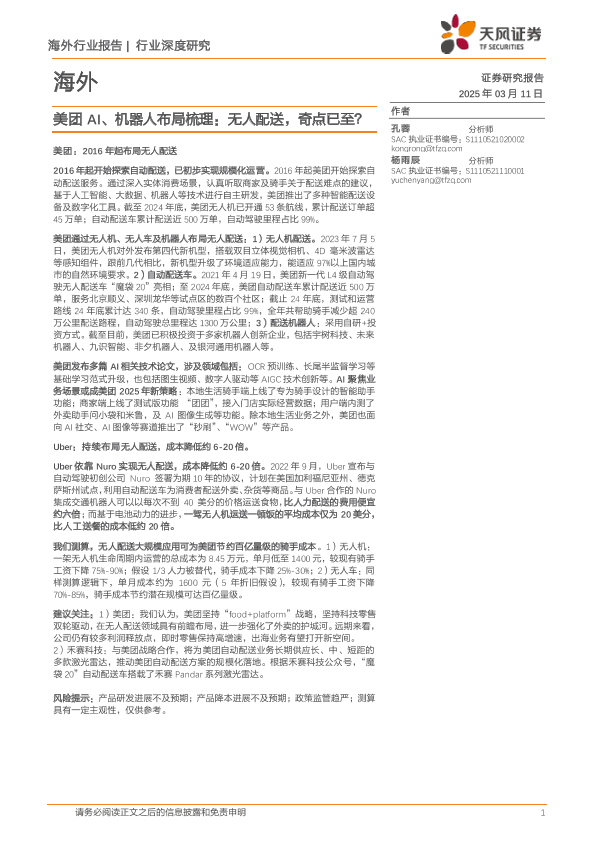 【天风证券】【20250311】2025年03月14日更新-海外行业深度研究-美团AI、机器人布局梳理-无人配送-奇点已至-14页