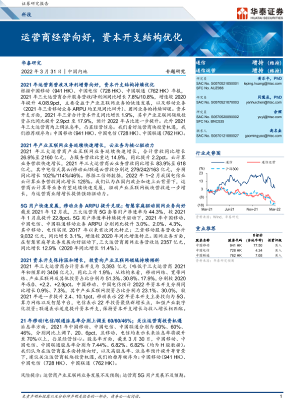 【华泰证券】【20220331】通信行业专题研究:运营商经营向好,资本开支结构优化-16页