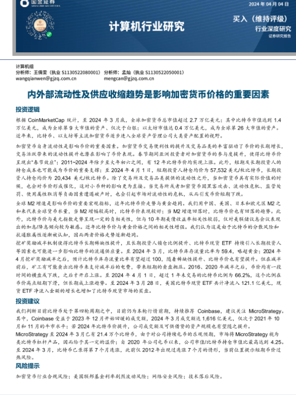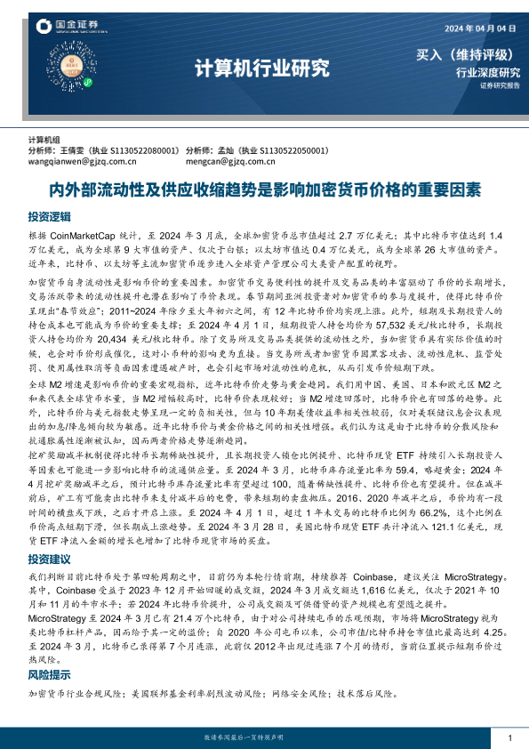 【国金证券】【20241111】计算机行业研究:内外部流动性及供应收缩趋势是影响加密货币价格的重要因素-16页