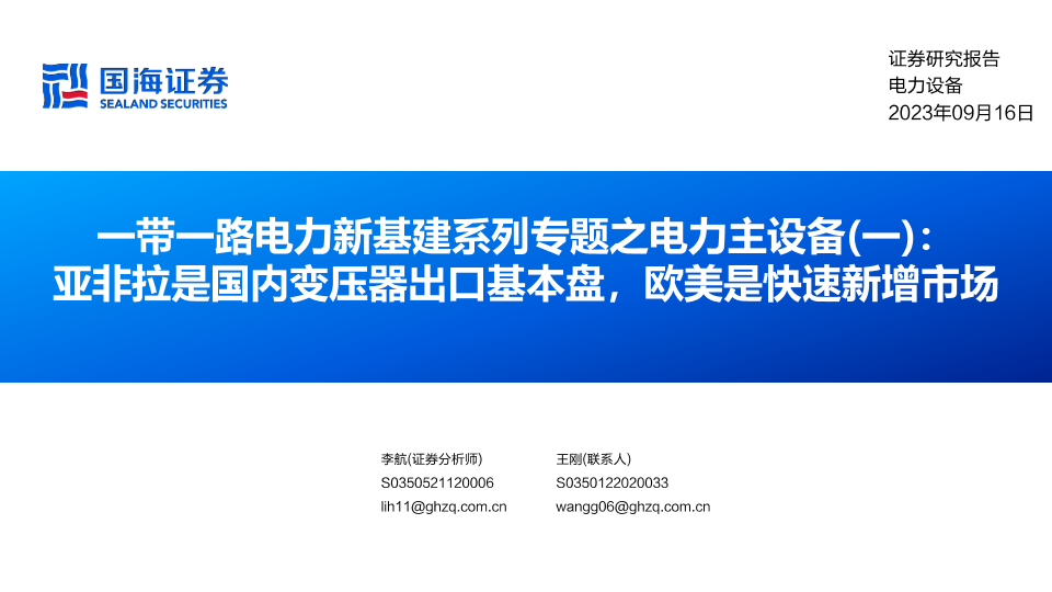 【国海证券】【20230916】一带一路电力新基建系列专题之电力主设备(一)-亚非拉是国内变压器出口基本盘-欧美是快速新增市场-39页
