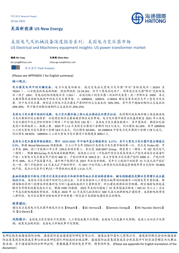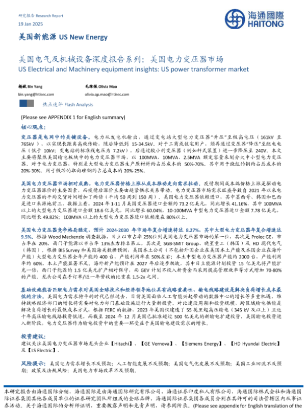 【海通国际】【20250119】美国电气及机械设备深度报告系列:美国电力变压器市场-25页