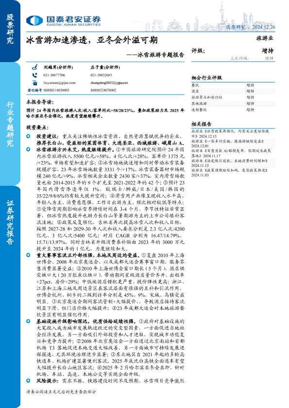 【国泰君安证券】【20241226】2024年12月28日更新-旅游行业冰雪旅游专题报告:冰雪游加速渗透亚冬会外溢可期-25页