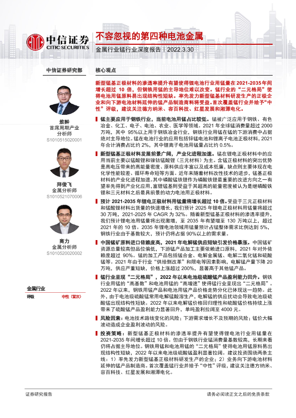 【中信证券】【20220330】金属行业锰行业深度报告:不容忽视的第四种电池金属-40页