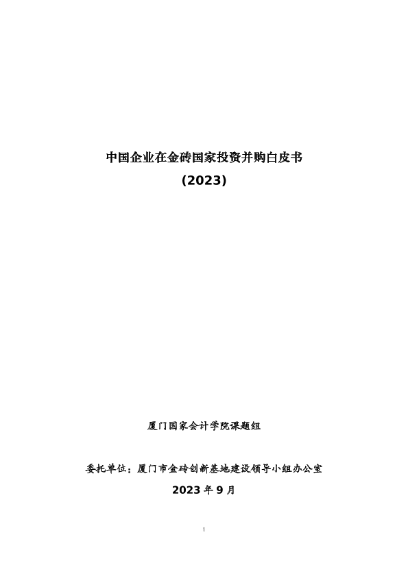 【厦门国家会计学院课题组】【202309】中国企业在金砖国家投资并购白皮书(2023)-45页
