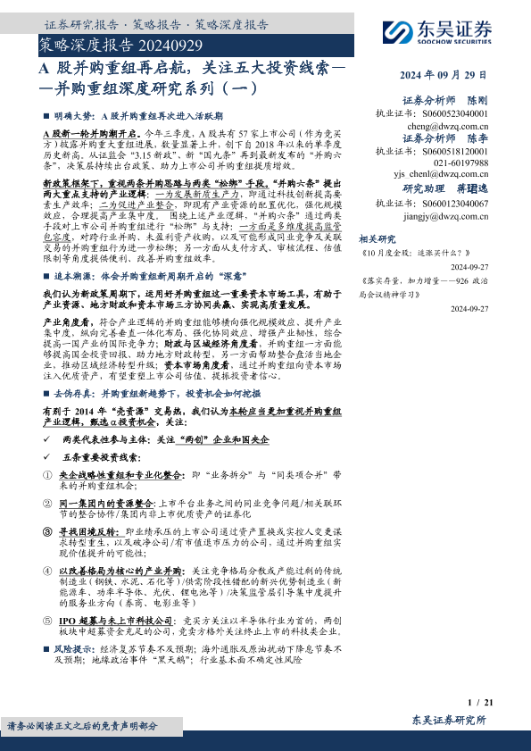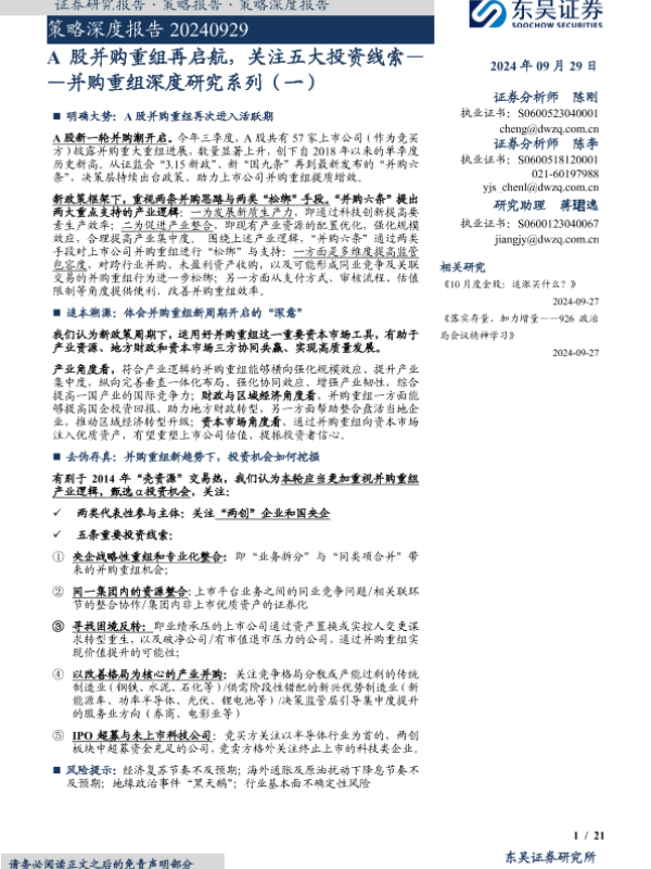 【东吴证券】【20240929】2024年10月01日更新-并购重组深度研究系列(一):A股并购重组再启航关注五大投资线索-21页