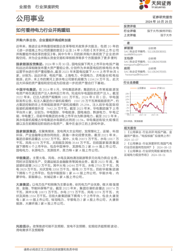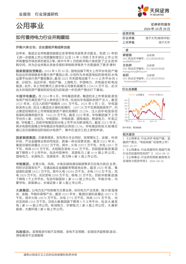 【天风证券】【20241025】2024年10月29日更新-公用事业行业深度研究:如何看待电力行业并购重组-20页