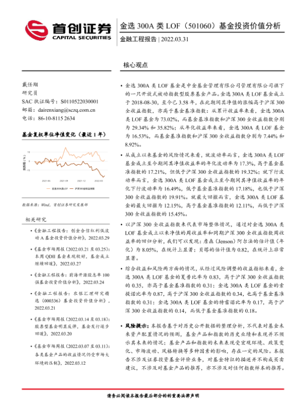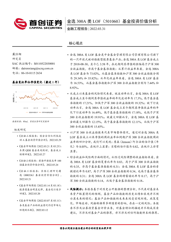 【首创证券】【20220331】金选300A类LOF(501060)基金投资价值分析-15页