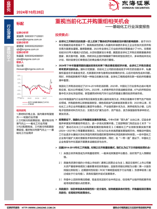 【东海证券】【20241028】2024年11月08日更新-【东海证券】基础化工行业深度报告:重视当前化工并购重组相关机会-15页