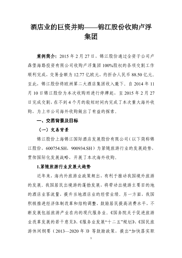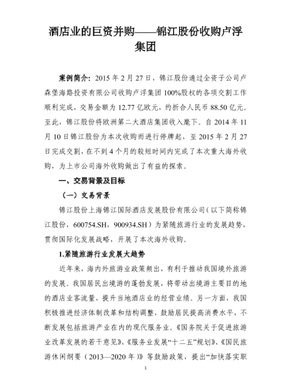卢浮集团 国际化战略 并购 酒店业 锦江股份