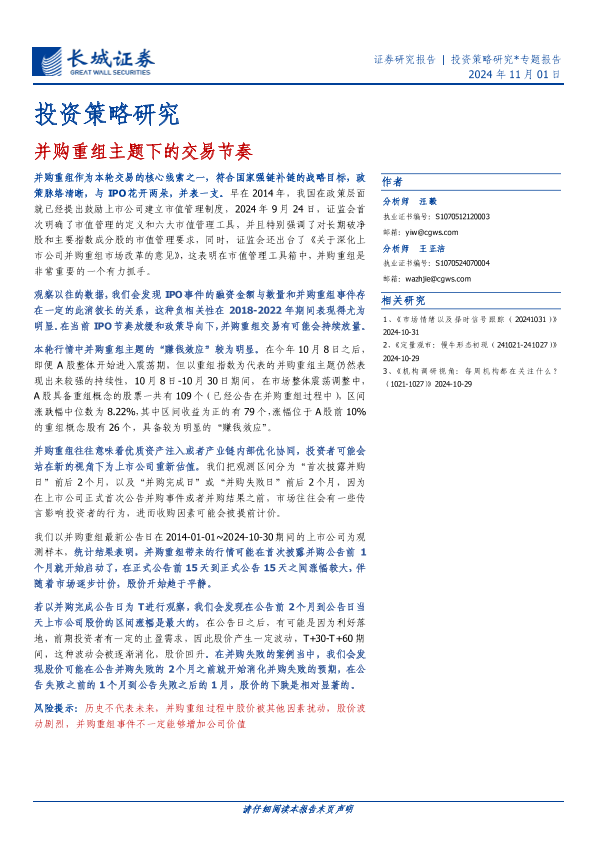【长城证券】【20241113】并购重组主题下的交易节奏-11页